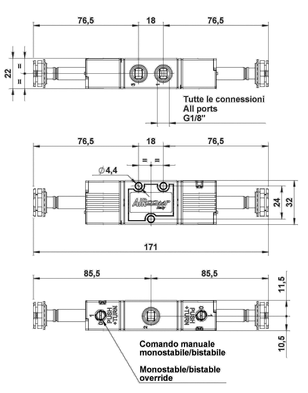 Tension: 12V DC, 24V AC, 24V DC, 110V AC, 220V AC