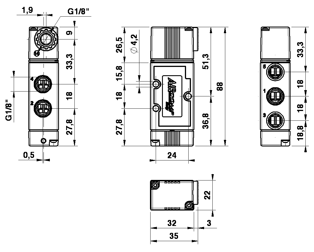 Pression de service:1 ÷ 10 Bar (0,10 ÷ 1,00 MPa) Pression de fonctionnement du pilote: 1 ÷ 10 (0,10 ÷ 1,00 MPa) Poids: 0,077 kg CODE : 1202225001 REF:VP 1/8'' 22 5 PN PM OO P