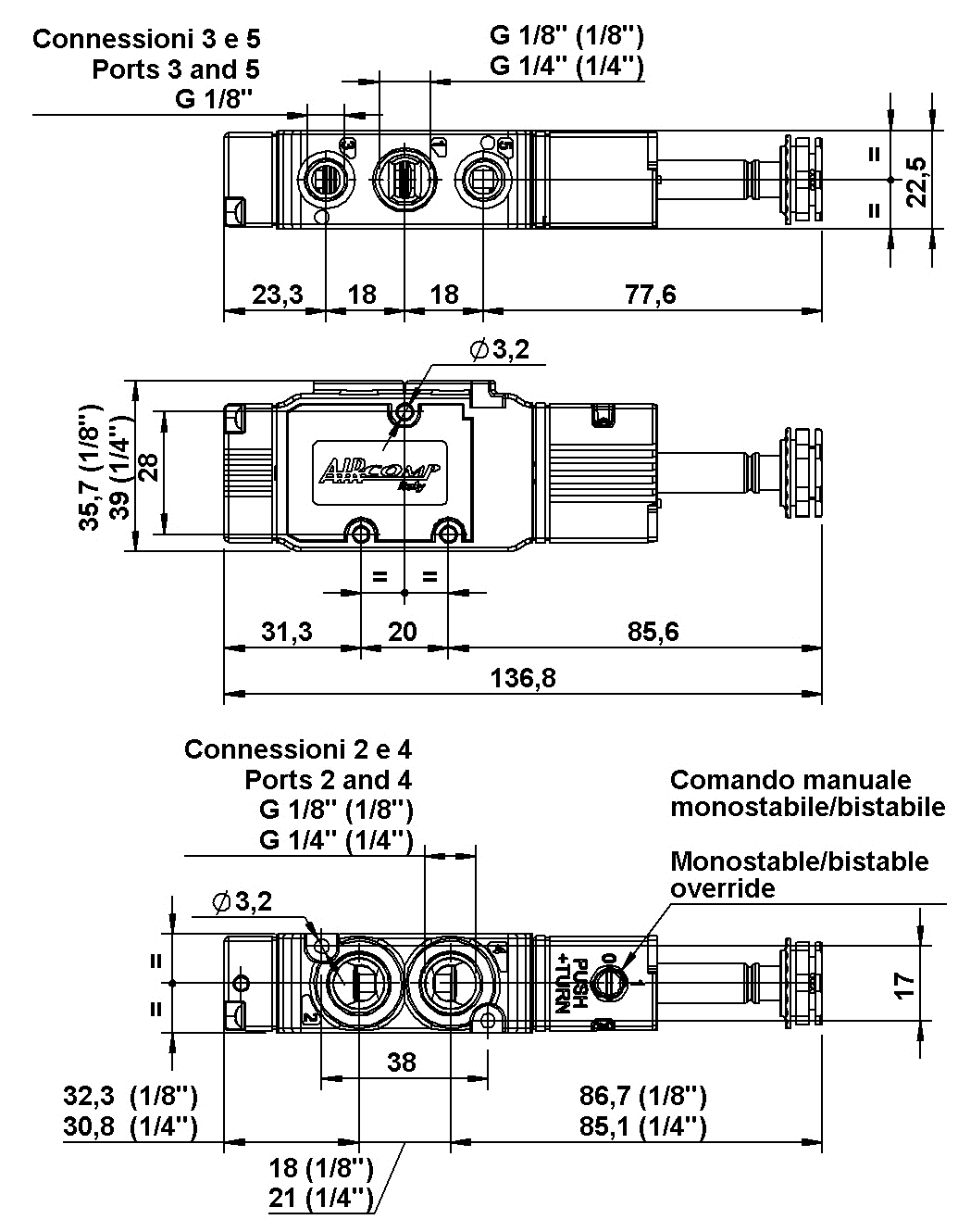 Tension: 12V DC, 24V AC, 24V DC, 110V AC, 220V AC