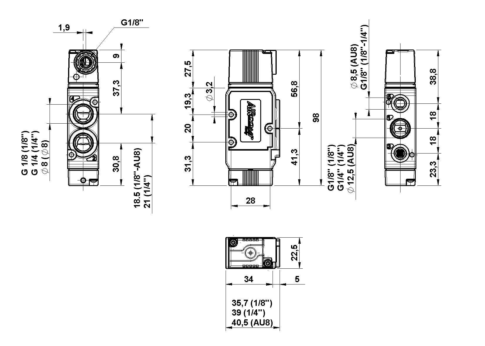 Pression de service: 1 ÷ 10 Bar (0,10 ÷ 1,00 MPa) Pression de fonctionnement du pilote: 1 ÷ 10 (0,10 ÷ 1,00 MPa) Poids: 0,097 kg CODE : 1252225001 REF: VPR 1/8" 22 5 PN PM OO P CODE : 1252235001 REF: VPR 1/4" 22 5 PN PM OO P